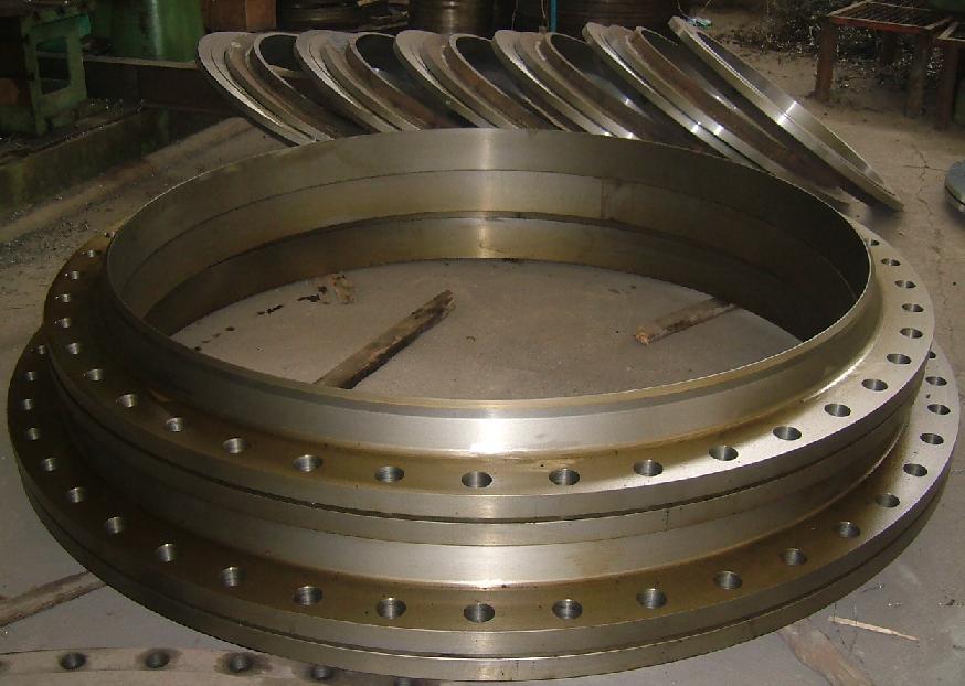 大型法蘭采用的工藝之中有一種是中板割制然后卷制而成。這樣中間的部分我們還可以做成其它的產(chǎn)品。如盲板或者小一號的法蘭等。還有一種工藝就是拼接,在單邊特別寬或者說是厚度薄的情況之下,更多的是采用的拼接來生產(chǎn)大型法蘭產(chǎn)品的。通常是4拼的產(chǎn)品,也就是說一整個的法蘭由4個90度完成。